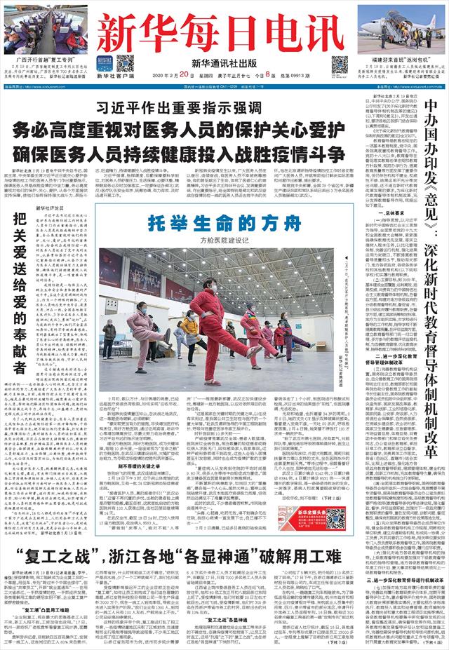 | ( 2020-02-20 ) 稿件来源:新华每日电讯 要 闻 |