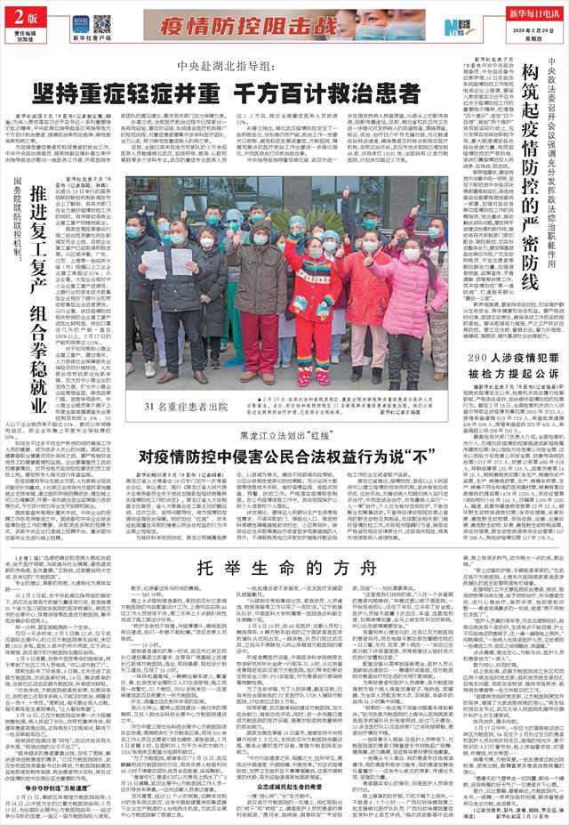 ( 2020-02-20 ) 稿件来源:新华每日电讯 疫情防控阻击战