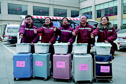 河北省第一批赴湖北抗疫医疗队的几名党员在出发前为自己的队伍加油鼓劲。(1月26日摄)新华社记者牟宇摄 |