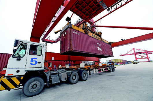 这是2月19日拍摄的合肥港国际集装箱码头。近日,合肥港在做好新冠肺炎疫情防控的基础上,有序实现复工复产。 新华社发(周牧摄)