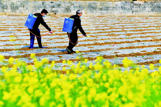 2月20日,贵州省兴义市纳灰村农民在田间劳作。当前,各地农民在做好防控疫情的同时,抢抓农时,展开春耕春管。 新华社记者杨文斌摄