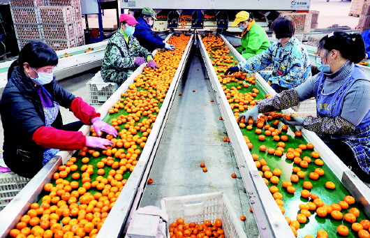 近日,江西省南丰县在做好疫情防控的同时,帮助果农解决蜜桔滞销问题,支持蜜桔销售、加工企业复工复产。 新华社发(黎兴旺摄)