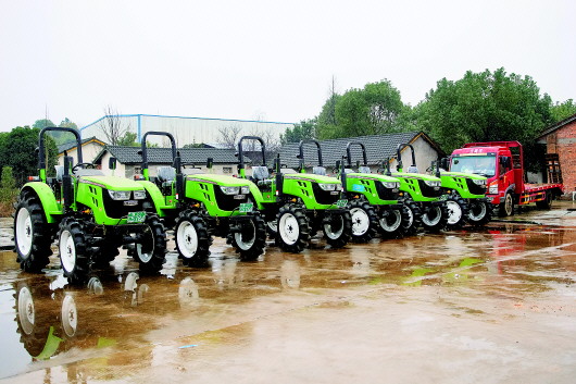 这是2月21日拍摄的存放在湖南省常德市鼎城区谢家铺镇的“共享农机”。