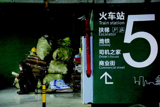 2月19日,湖北武汉武昌火车站地下停车场内,一位滞留武汉的旅客正在看书。