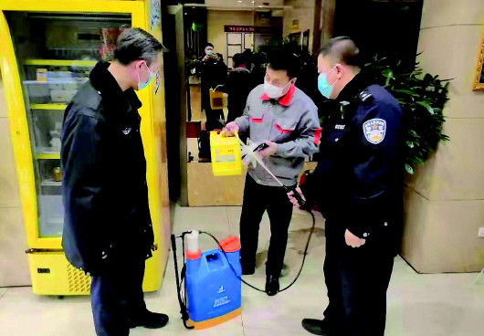 王春天(右一)生前在辖区内进行疫情封控排查走访。新华社发 |