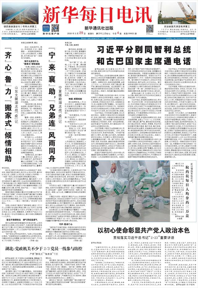 | ( 2020-02-29 ) 稿件来源:新华每日电讯 要 闻 |