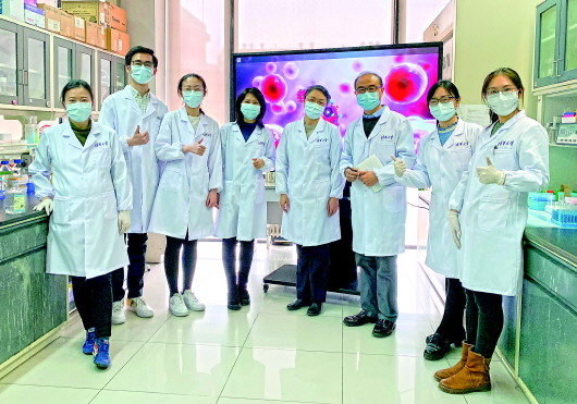▲3月2日,清华大学全球健康与传染病研究中心主任张林琦(右三)与其团队成员合影。 新华社发