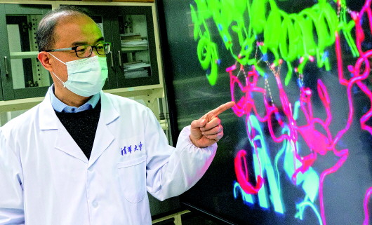 ▲3月2日,中国工程院院士、清华大学教授程京向记者展示其团队研究成果。 新华社记者孟菁摄