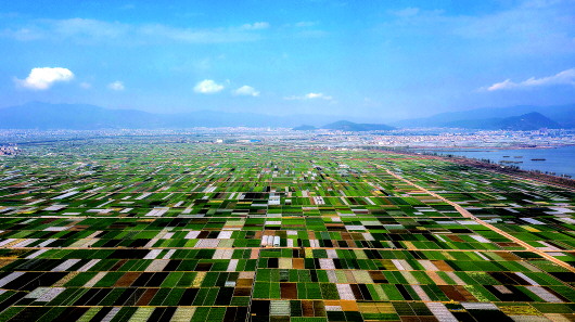 农忙时节,云南通海县的农作物长势喜人,山峦、湖水与农田组成了一幅美丽的田园诗画卷(3月4日摄)。 新华社记者胡超摄