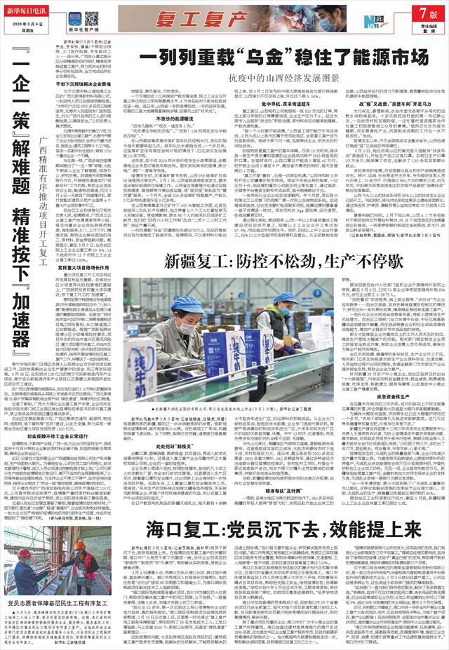| ( 2020-03-06 ) 稿件来源:新华每日电讯 复工复产 |