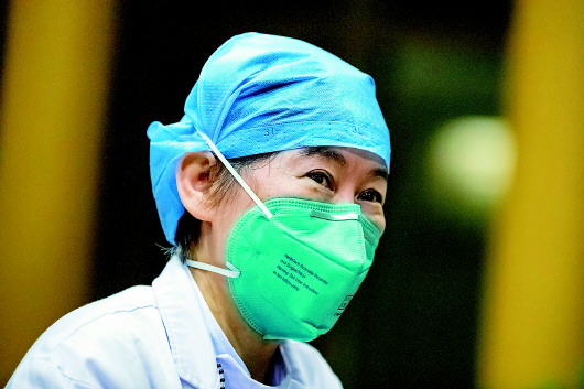 ▲军队支援湖北医疗队队员宋彩萍鼓励大家。新华社记者程敏摄 |