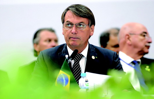 2019年12月5日,在巴西本图贡萨尔维斯,巴西总统博索纳罗(前)出席会议。2020年3月13日巴西总统博索纳罗在社交媒体上宣布,他本人新冠病毒检测结果呈阴性。 新华社发(拉赫尔·帕特拉索摄)
