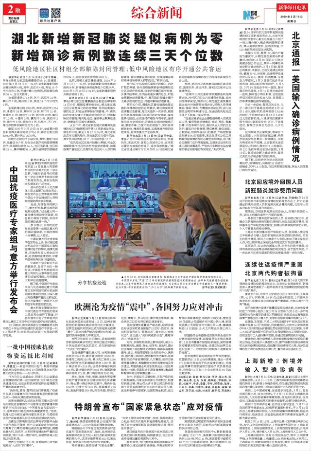 | ( 2020-03-15 ) 稿件来源:新华每日电讯 综合新闻 |