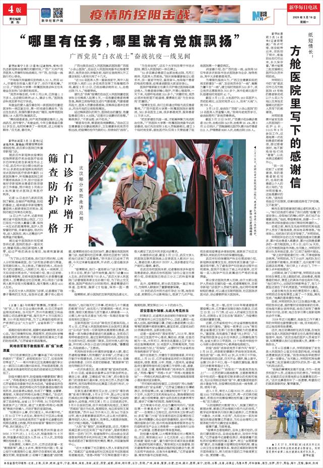 | ( 2020-03-16 ) 稿件来源:新华每日电讯 疫情防控阻击战 |
