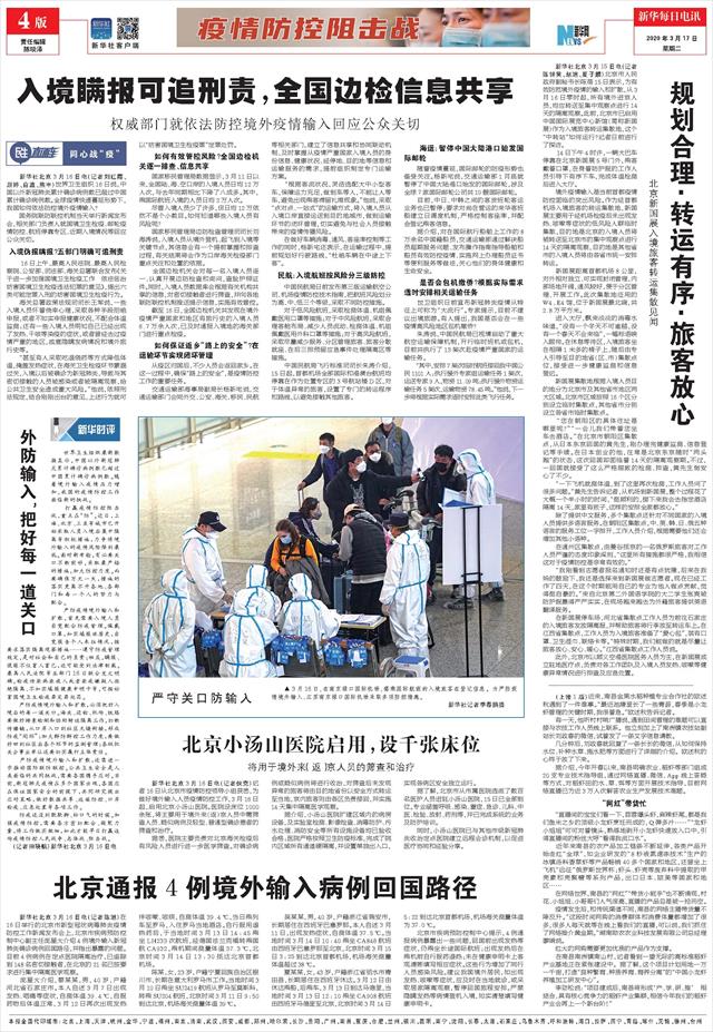 | ( 2020-03-17 ) 稿件来源:新华每日电讯 疫情防控阻击战 |