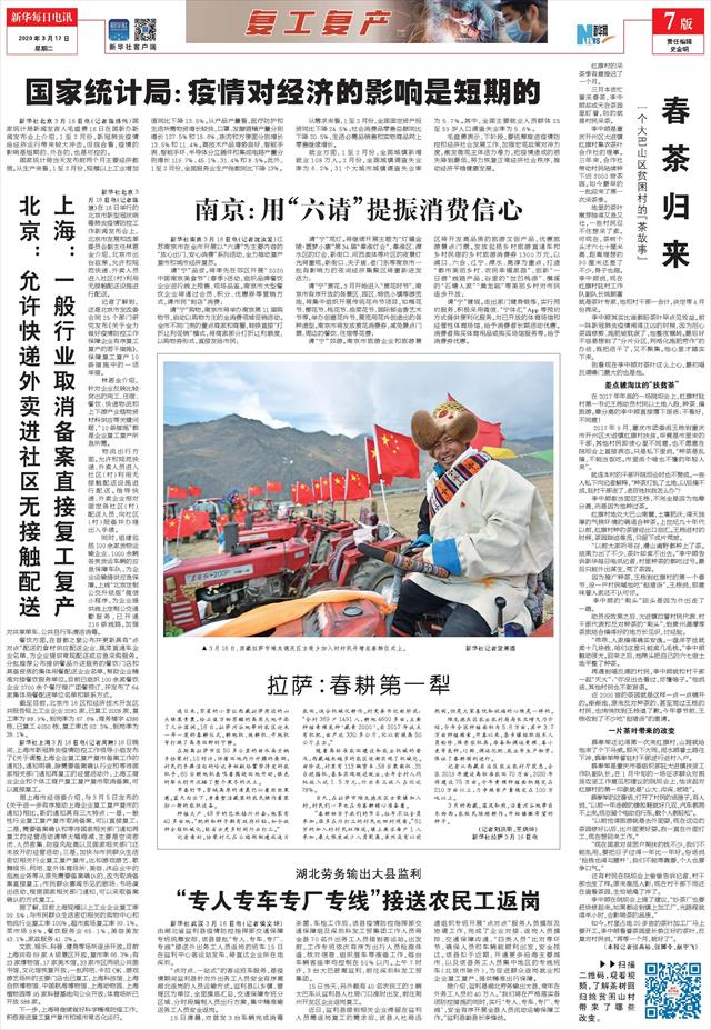 | ( 2020-03-17 ) 稿件来源:新华每日电讯 复工复产 |