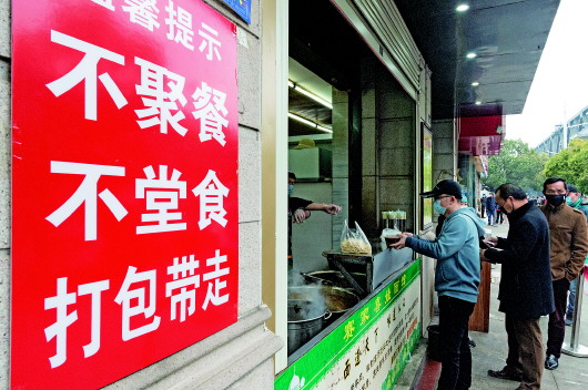 3月16日,湖北襄阳部分牛肉面馆恢复营业。据了解,这些门店在现阶段只能通过电商、配送或打包外卖形式销售。 新华社发(谢剑飞摄)