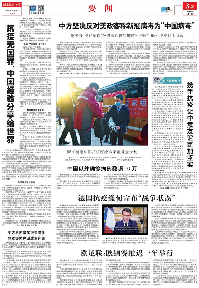 ( 2020-03-18 ) 稿件来源:新华每日电讯 要闻