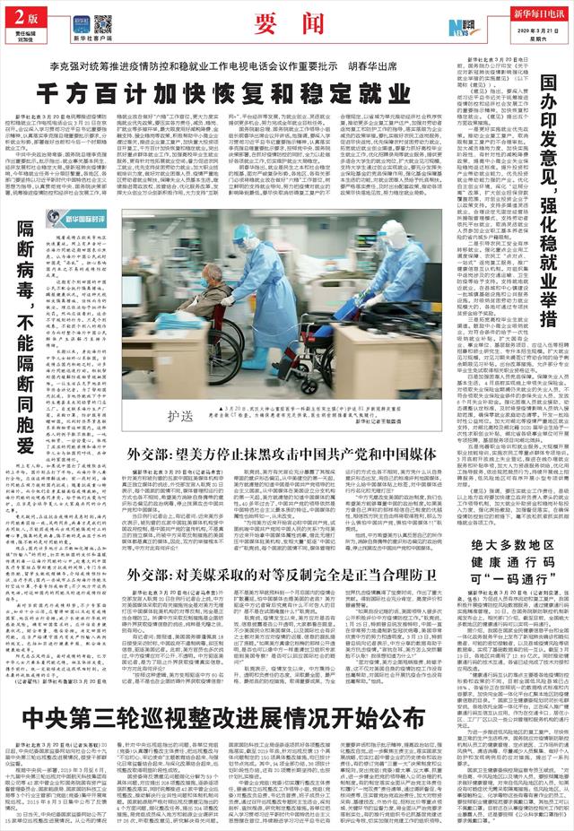 | ( 2020-03-21 ) 稿件来源:新华每日电讯 要 闻 |
