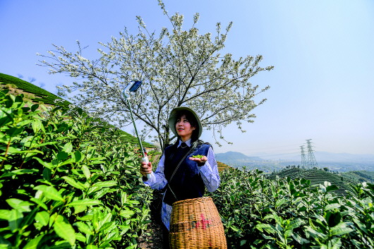 浙江省杭州市富阳区富春街道拔山村的万亩茶山迎来了春茶大面积开采的时节。拔山村是著名的茶村,茶叶种植面积约10000亩,2019年茶产值达到1.3亿元。近期,当地政府通过设立茶山婚纱拍摄基地、组织茶山亲子采摘游等推动特色乡村旅游发展,同时还组织巾帼志愿者帮助春茶采摘,开辟春茶云直播、云销售等线上销售方式,多渠道多方式推动茶乡增产增收。 新华社记者徐昱摄