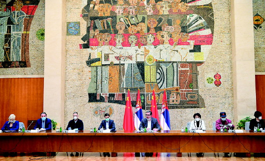 塞尔维亚总统武契奇23日宣布,经过和中国援塞医疗专家组商议,塞尔维亚决定采取大范围检测等措施抗击疫情。 新华社发(塞尔维亚总统府供图)