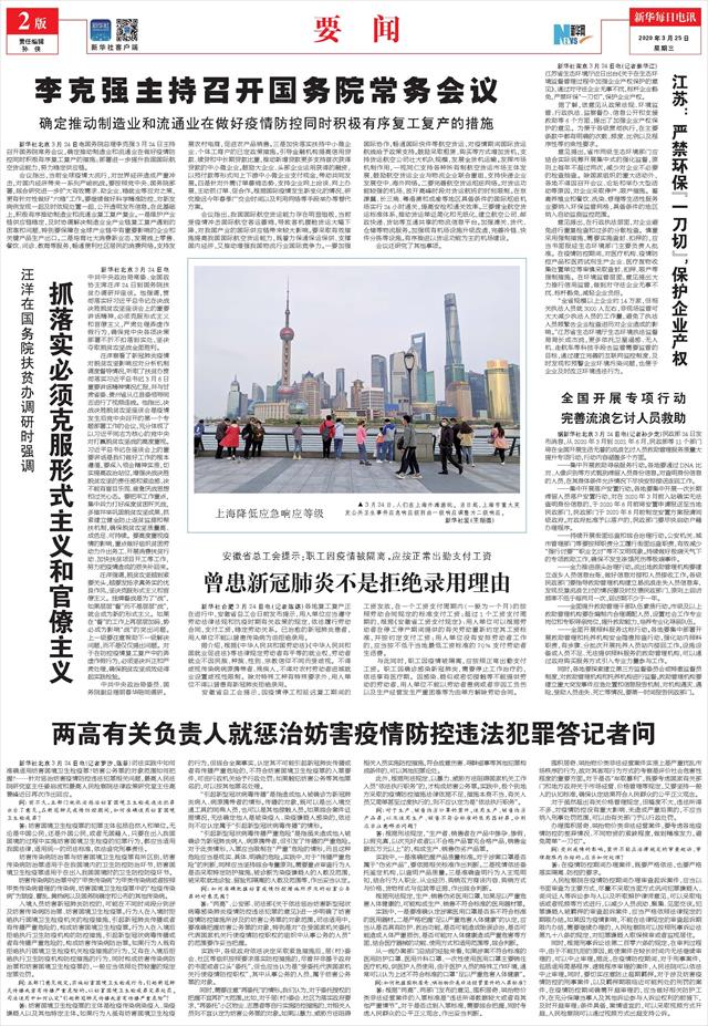 | ( 2020-03-25 ) 稿件来源:新华每日电讯 要 闻 |