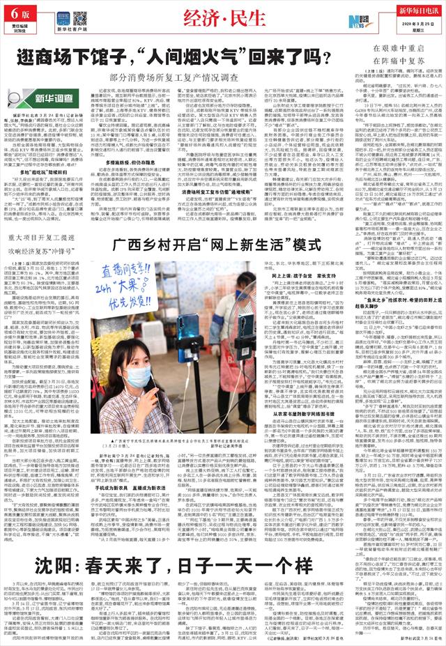 | ( 2020-03-25 ) 稿件来源:新华每日电讯 经济˙民生 |