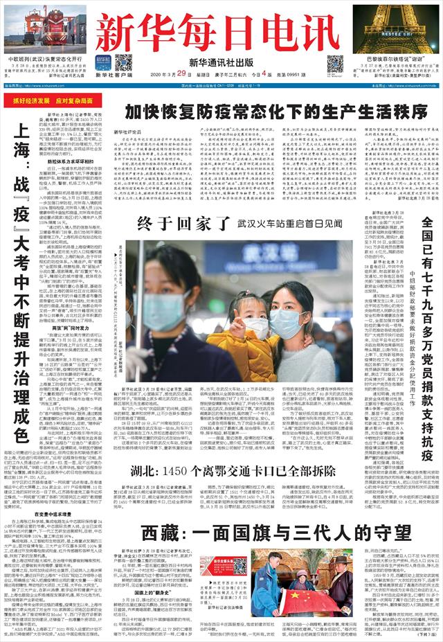| ( 2020-03-29 ) 稿件来源:新华每日电讯 要 闻 |
