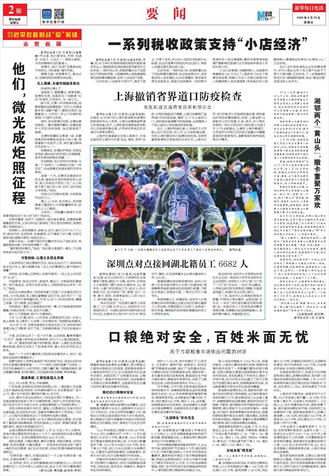 | ( 2020-03-29 ) 稿件来源:新华每日电讯 要 闻 |