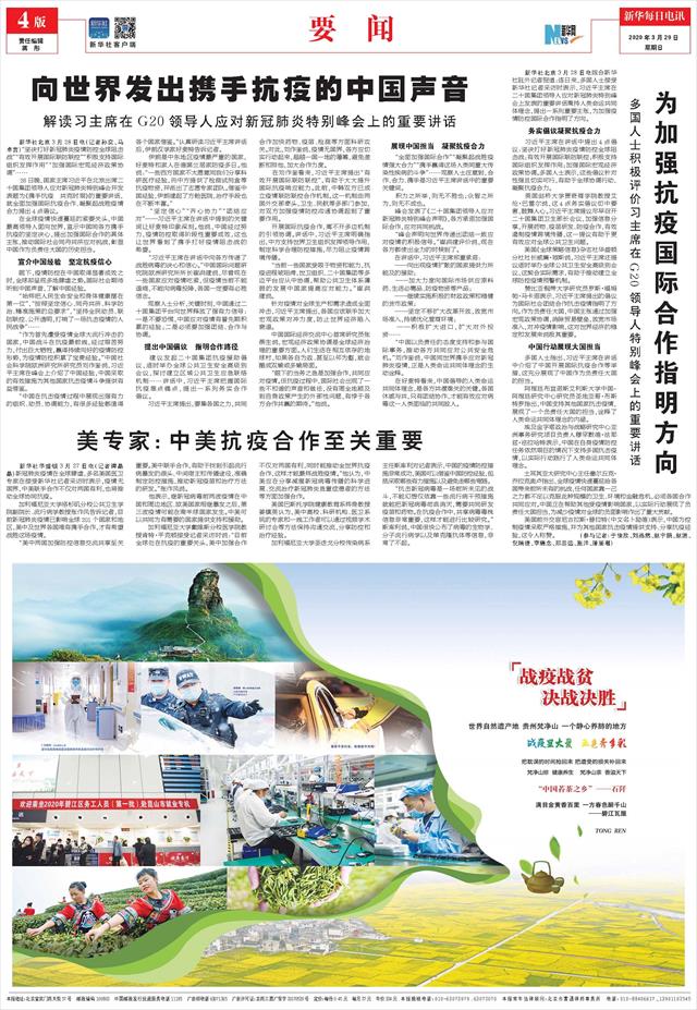 | ( 2020-03-29 ) 稿件来源:新华每日电讯 要 闻 |