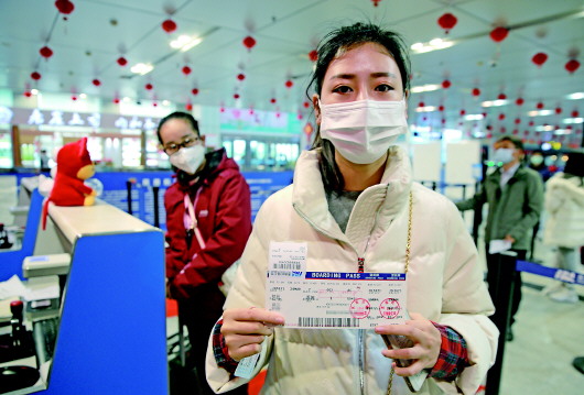 3月29日,旅客进入湖北恩施许家坪机场安检口展示登机票。