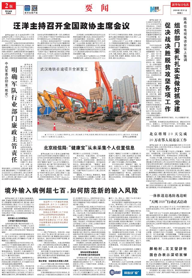 | ( 2020-03-31 ) 稿件来源:新华每日电讯 要 闻 |