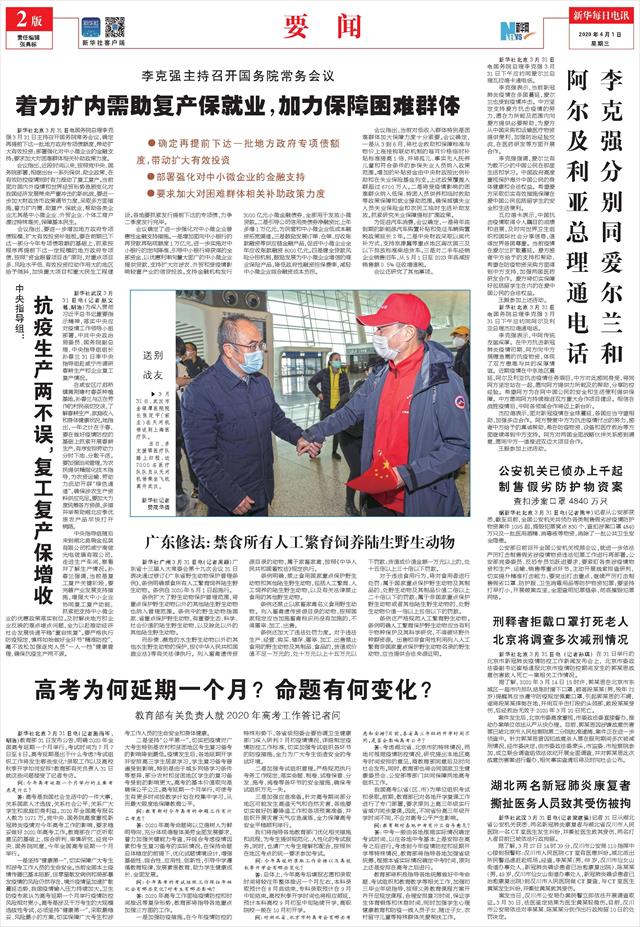 | ( 2020-04-01 ) 稿件来源:新华每日电讯 要 闻 |