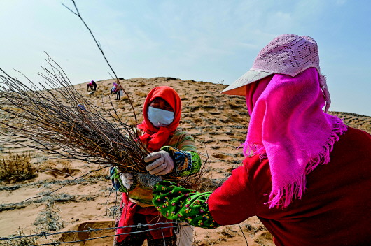 腾格里沙漠治沙忙
