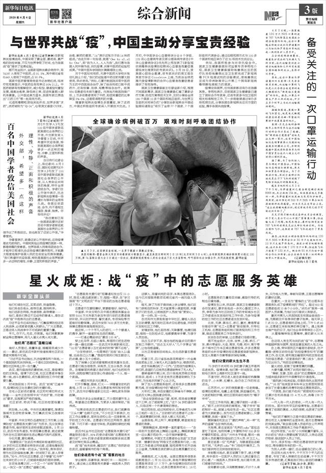 | ( 2020-04-04 ) 稿件来源:新华每日电讯 综合新闻 |