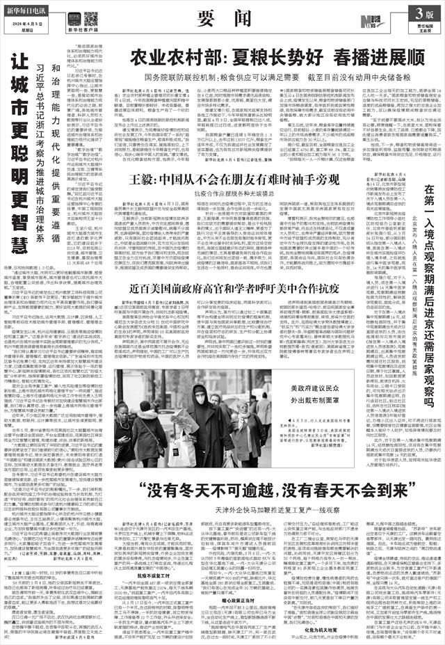 | ( 2020-04-05 ) 稿件来源:新华每日电讯 要 闻 |