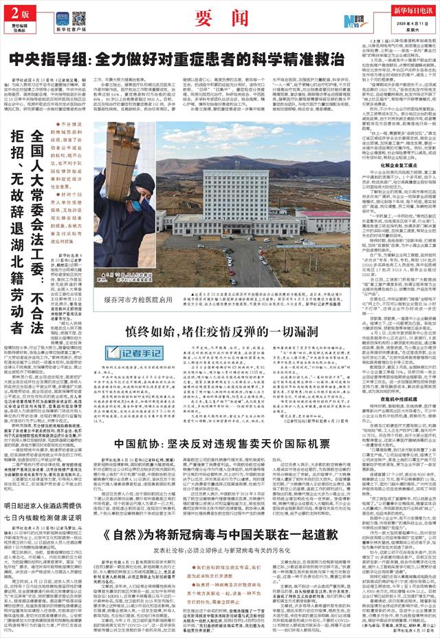 | ( 2020-04-11 ) 稿件来源:新华每日电讯 要 闻 |
