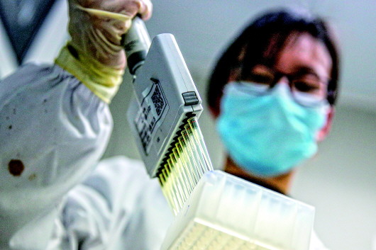 4月11日,工作人员在国药集团中国生物新冠疫苗生产基地质量检定部门对新型冠状病毒灭活疫苗样品进行杂质检测。新华社记者张玉薇摄 |