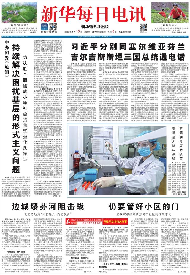 ( 2020-04-15 ) 稿件来源:新华每日电讯 要 闻