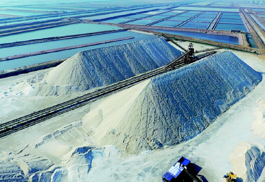 近日,位于河北省唐山市的长芦大清河盐场开始春季扒盐作业,工人们利用晴好天气加紧收获春盐。 新华社记者杨世尧摄