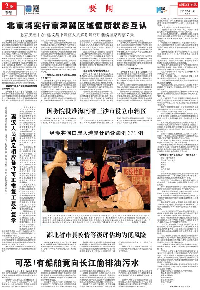 ( 2020-04-19 ) 稿件来源:新华每日电讯 要 闻