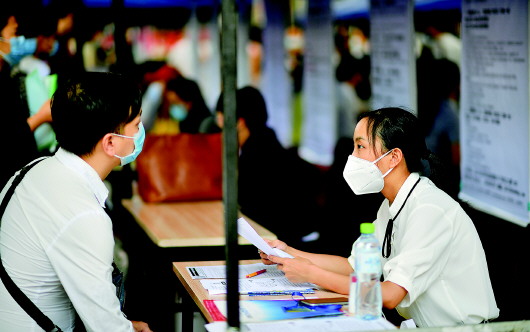 当日,为支持各类用人单位复工复产、帮助劳动者实现就业,“战疫情·促就业”大型综合性招聘会在海口市京华城举行。在做好疫情防控工作的前提下,招聘会邀请100多家企业参展,提供了4000个就业岗位。 新华社记者郭程摄