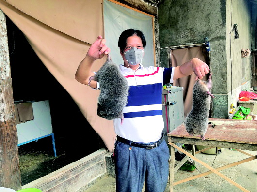 息烽县小寨坝镇特种养殖户展示养殖的竹鼠。 本报记者刘智强摄