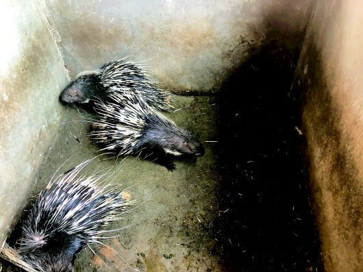毕节市七星关区沙地社区贫困户李隆成养殖的豪猪。 本报记者刘智强摄