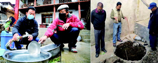 右图为2019年10月18日,张金利(中)指导村民挖自来水防冻井(新华社发)。