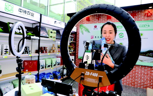 ▲4月21日,在金米村培训中心,秦岭天下电子商务有限公司员工李旭瑛在网上直播卖木耳。陕西省商洛市柞水县小岭镇金米村是传统的山区农业村,为拓宽贫困群众的增收渠道,金米村将木耳产业作为脱贫攻坚主导产业,引进5家农业龙头企业,建成木耳菌包生产厂和木耳分拣包装生产线,并推行“借袋还耳”“借棚还耳”木耳产业发展新模式,带动全村188户贫困户参与木耳产业发展。 新华社记者梁爱平摄