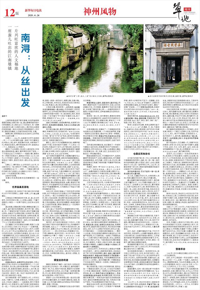 繁华事散逐香尘,南浔既是一座蚕儿吐出的江南雄镇,又是一片从丝出发的人文福地。以蚕桑为龙头支撑起的兴旺与富庶,百年后仍然能找到当年的佐证。那些雕栏玉砌的豪门大宅,那些曲径通幽的藏书楼,那些隐约尚存的优雅气质,无不传达出一个逝去时代的温暖。