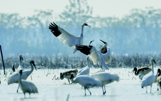 “我们把白鹤列为省鸟,就是要让江西天更蓝、山更绿、水更清,让白鹤在江西世世代代翩跹起舞。”在2019年12月举办的鄱阳湖国际观鸟周上,江西省委书记刘奇向到访的各国嘉宾深情地讲起“爱爱”的故事。