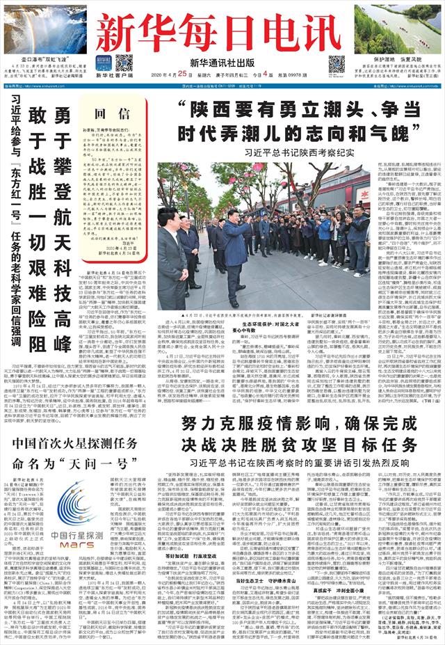 | ( 2020-04-25 ) 稿件来源:新华每日电讯 要 闻 |