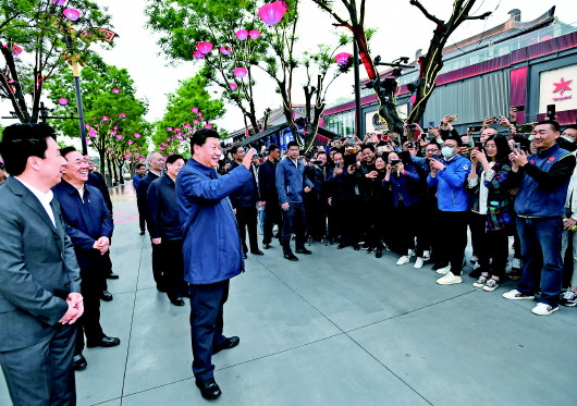 制造业领域的复工复产是整个经济体系恢复循环的发动机,社会生活领域复商复市是经济体系恢复循环的助推器。调研的最后一站,习近平总书记来到毗邻大雁塔的大唐不夜城步行街。